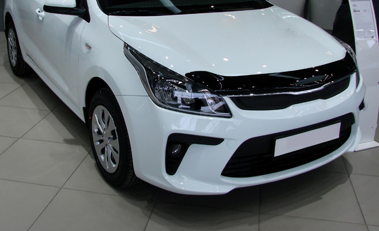 У нас вы купите Дефлектор капота / Мухобойка / Kia / Rio (2017+), этот аксессуар идеально «сядет» на ваш автомобиль. Эта модель спроектирована под ключ и обеспечивают 100% защиту.